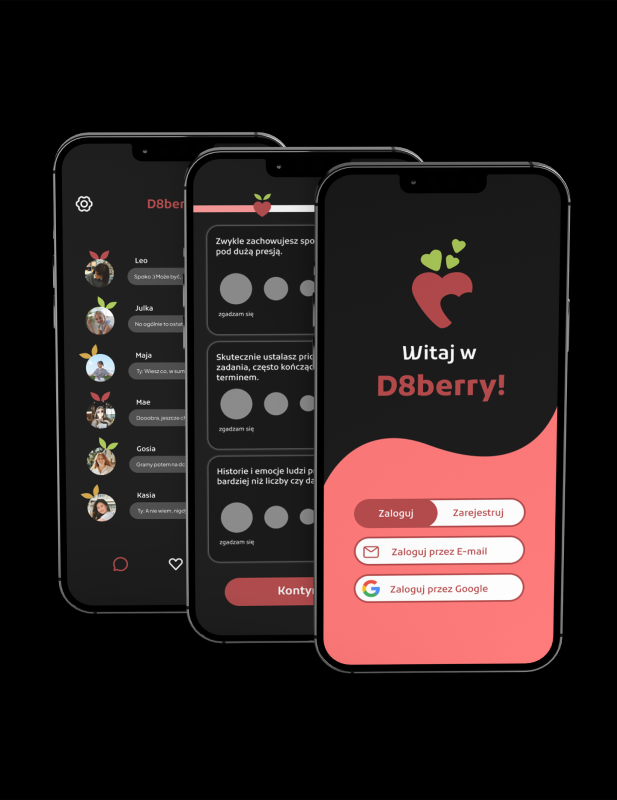 Motywem przewodnim jest truskawka, do czego dopasowany jest key visual projektu. Aplikacja polega na pogłębieniu istoty aplikacji randkowych, poprzez angażowanie użytkowników, do poznawania swoich wzajemnych osobowości, pasji, przemyśleń, jak i dowiadywaniu się nowych rzeczy na temat siebie samego. W prototypie przedstawione są przykładowe, automatycznie generowane zadania na czatach, dzielące się na kategorie: na początek rozmowy, głębokie pytania oraz Quizy, angażujące obydwie strony. Grając razem, zdobywa się “truskawki” – punkty, które potem można zamieniać, na stopniowo wzrastające pod kątem wartości nagrody w aplikacji. Samouczek, pojawiający się po rejestracji, wyjaśnia nowym użytkownikom najważniejsze informacje i funkcje aplikacji. Jest tam, m.in. wyjaśnione, jak “współczynnik truskawki” po analizie algorytmu profilu (powstającego po części z wybieranych opcji podczas rejestracji), wykazuje poziom dopasowania osobowości, zainteresowań i potrzeb użytkowników, ponieważ głównym celem aplikacji jest, aby w przyjaznej oprawie wizualnej, ułatwiać poznawanie się i nawiązywanie relacji.